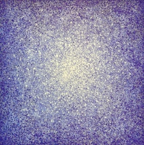 Hauptfarben oder eine Farbe mit hell und dunkel. Erst wird die verdünnte helle Farbe in der Mitte der Leinwand getröpfelt, dann kommt nach außen die dunklere Farbe. Es braucht eine Menge Tropfen, um